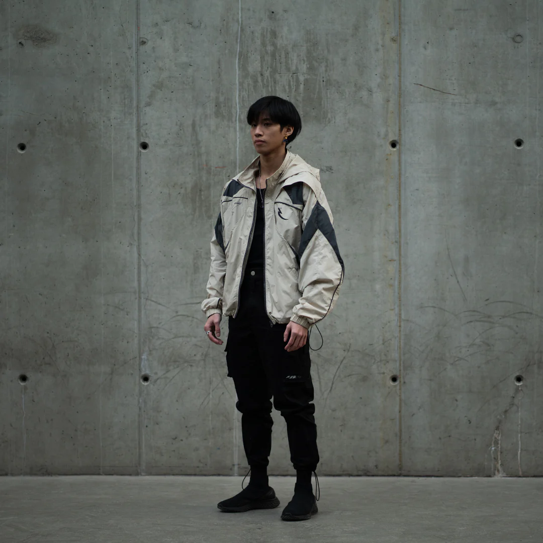 > 2 (TWO) LAYER JACKET SYS. TOP LAYER COVERS EXPOSED PARTS OF THE BASE LAYER, CREATING A 3D EFFECT BETWEEN FABRICS.